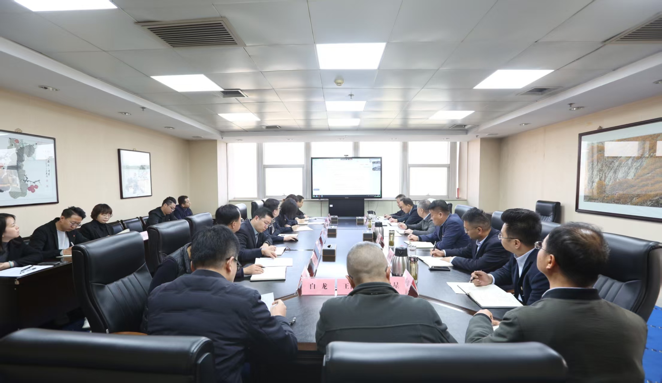 会议以现场+视频会议形式召开,各职能部门负责人参加现场会议,各分子公司领导班子成员、财务部负责人参加视频会议。
