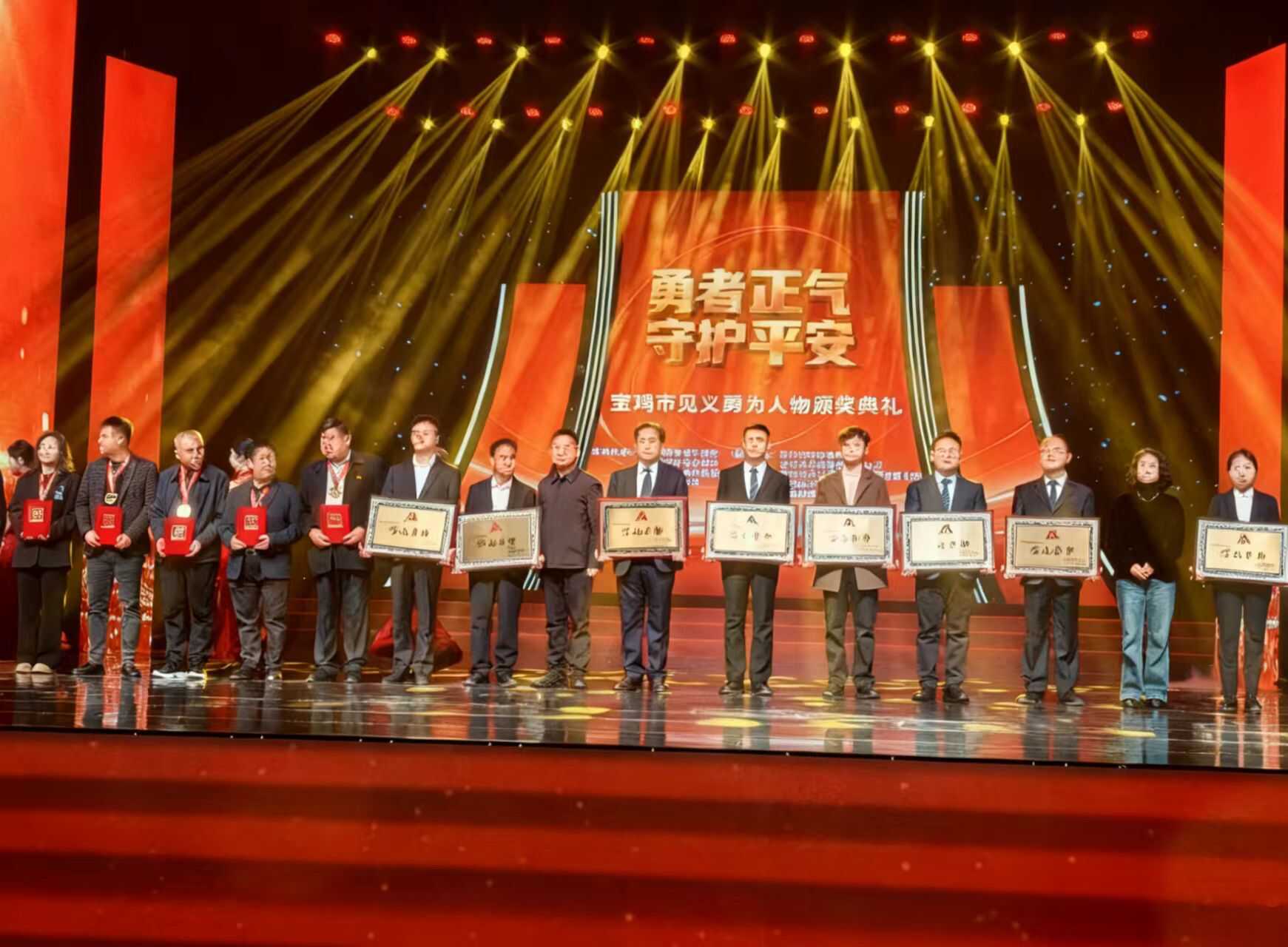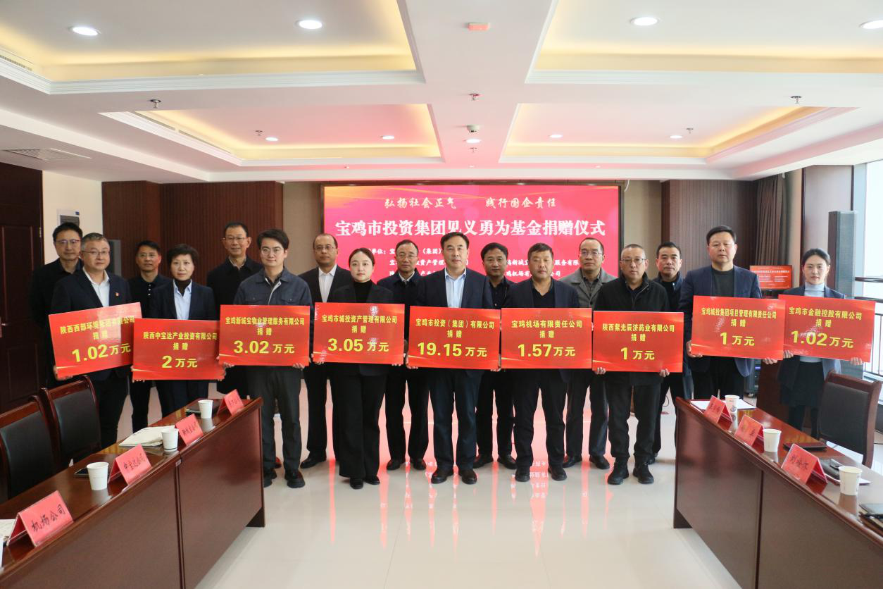 11月10日,“勇者正气 守护平安”宝鸡市见义勇为人物颁奖典礼在宝鸡大剧院举行。宝鸡市投资(集团)有限公司、宝鸡市城投资产管理有限公司、陕西中宝达产业投资有限公司、宝鸡机场有限责任公司、宝鸡新城宝物业管理服务有限公司、宝鸡市金融控股有限公司、陕西西部环境集团有限公司、陕西紫光辰济药业有限公司、宝鸡城投集团项目管理有限责任公司、博友达(西安)酒店管理有限公司、陕西中盛康城产业发展有限公司11家下属单位荣获宝鸡市见义勇为基金会颁发的“爱心企业”称号,集团党委工作部副部长罗祥伟获评“见义勇为好职工”。