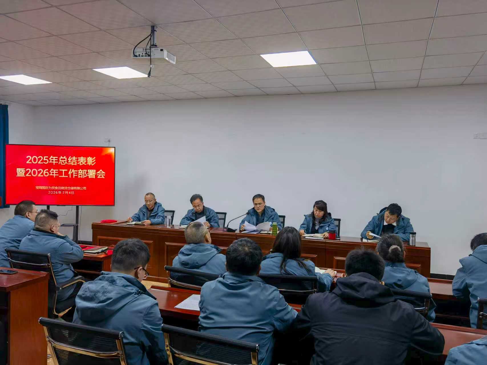 2月4日,宝鸡国启为民食品物流仓储有限公司召开2025年总结表彰暨2026年工作部署大会。公司领导班子及全体职工参加会议。